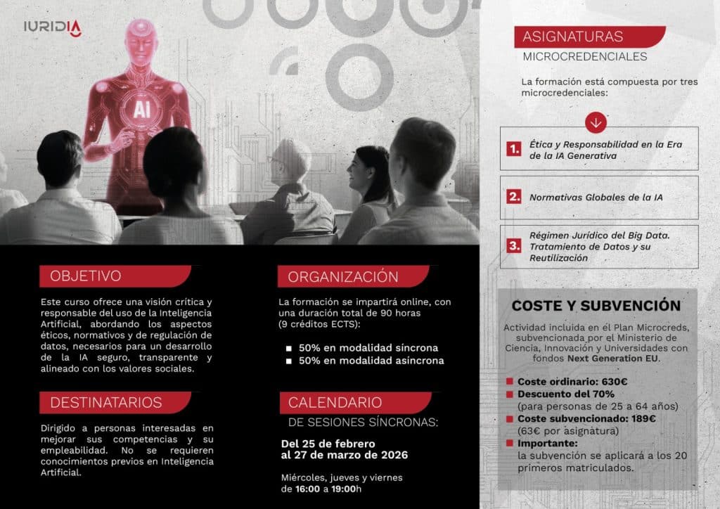 responsable, acreditativo de la superación del curso RETOS ÉTICOS Y JURÍDICOS DE LA INTELIGENCIA ARTIFICIAL